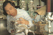 万能锡铺地址:龙山街81号电话:(04)777-7847营业时间:0930~2100 锡器为昔日婚嫁、宗教礼俗必备的器皿,不过今日的锡器制作已融入更多创意巧思,龙山寺旁的万能锡铺所创作的锡器除了杯壶、香炉等传统生活器皿外,另有各色摆饰品,如生动有趣的中国故事人物、造型活泼的十二生肖塑像等,将传统锡器工艺化为更精致丰富的艺术品。