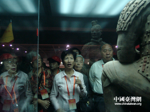中国台湾网9月14日西安消息 原“台湾光复致敬团”后人谒黄帝陵团在结束9月12日“祭祖”之行后,昨日来到有“世界第八大奇迹”之称的秦兵马俑展坑参观。一直对古城西安怀有美好期待的团员们实现了一次中华文化记忆的重新延续,感受到了中华文化最壮阔的生命力。