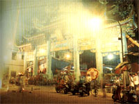 礁溪协天庙是北部地区最大的关帝庙,由于宜兰、基隆一带的漳州人称关公为“协天大帝”,所以宜兰的关帝庙大多称为协天庙。 庙内供奉一尊蚕丝关公像,是先以竹片或木片制成模型,蚕儿在模型上吐丝后,再涂上涂料而成,制作细密、层次分明,神韵栩栩如生,十分罕见;1997年新建好一座高约4公尺、基座2公尺的青铜关公像,立于中正路、中山路口,马上英姿颇有威严。庙前原本还有座戏台,为演戏酬神之用,屋顶采歇山重詹式,共有16柱,为全台仅见,但因空间不够使用,已迁建忠义大楼旁,只有重大祭典时才使用。 协天庙的祭典以春秋祭典与乞龟为主,每年此时,各地分灵庙都会回协天庙进香,正殿内供满了上千座的关帝君神像,各地信徒也前来观礼、参拜。农历正月13日(关帝飞升日)的春祭、6月24日(关帝诞辰日)的秋祭,都于一日之始——午夜子时举行,为了让地方人士参与,秋祭并于上午辰时重复举行一场,由地方首长主祭。 协天庙的春秋祭典中,佾舞是一大特色,协天庙的佾舞是祭祀大夫的四佾舞,由当地16名小学童装扮成关家军,左手持“关”字样盾牌,右手持长柄大斧,随着节奏开、合、俯、仰,在庄严肃穆之下,又带有一分学童的天真。另有两位舞生持剑,站在阵前左右,负责监督佾舞进行,不须随乐起舞。 在击鼓声下,祭典正式开始,启扉、痉毛血、迎神、进馔,舞生并于三献礼时起舞,在饮福受胙后撤馔、送神、望燎以至阖扉,历时90分钟的仪式,完全遵循古礼。在撤馔后,庙方发送平安饼干给观礼者,进香膜拜者也得到庙方赠送的寿面。 协天庙另一个重要祭典是乞龟拜拜,于农历正月13~16日举行。在宜兰开垦的初期,人们为了感谢关帝君的庇佑,在关帝飞升日以大寿龟祭祀。每年的炉主必须事先制好象徵平安如意的大寿龟,从正月13日起,接受信徒叩谢、祈求,到16日才杀龟,凡是对神有所请求并取得“龟肉”的信徒,在第二年应验后必须加倍偿还“寿龟”,有的还加演酬谢神戏。如果所请求的事未如愿,或是家有丧事,可等到应验了才奉还。由于信众颇多,每年乞龟拜拜时,庙前供奉的“寿龟”数量十分惊人;由各地前来的信徒也使得协天庙一带人车塞巷,是礁溪乡的年度重要祭典。 乘车风向标: 1.自台北北站、基隆市文化中心旁搭往宜兰、罗东、苏澳的台汽客运,于礁溪站下车,循中山路步行15分钟可抵。 2.搭北回线铁路至礁溪站下车。