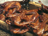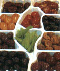 宜兰名产鸭赏、胆肝、蜜饯和苏澳羊羹远近驰名,合称宜兰四宝。 鸭赏是宜兰最独特的特产,昔日宜兰多雨多池塘,养鸭事业兴盛,鸭子宰杀后,只能以盐腌存慢慢食用,因而发展出制作鸭赏的技术。鸭赏系是老菜鸭涂上香料,用竹片撑开加以曝晒,再放入铁皮烤箱中以炭火燃烧甘蔗熏烤而成。鸭赏可切成细丝加蒜下酒,也可用炖、煎、炒等吃法,风味独特。 胆肝即咸猪肝,是将猪肝浸渍于酱油、香料中,经曝晒重压而成。胆肝依质感分柴肝及粉肝二种,前者含水量少,口感较硬且较咸,粉肝则恰恰相反;食用时以水蒸透后,再切片配以大蒜、生姜、酒、糖,是下酒、配饭的好食物。 蜜饯以宜兰盛产的金枣、李子腌制而成,尤以金枣糕、李仔糕素离开盛名。宜兰市的橘之乡蜜饯形象馆不仅可买到各种可口的蜜饯,还可了解其制作过程。 苏澳羊羹香润可口,甜度适中,据说因苏澳冷泉水密度较重,使得苏澳的羊羹口感特别细滑,中山路的凤鸣羊羹本铺和苏澳制果厂为知名老店。