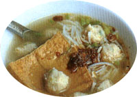 由宜兰市沿着7号省道南行,经过员山附近时,路旁可见“员山鱼丸”的招牌,几家小吃摊虽规模不大,但热气腾腾的锅炉旁,总围坐着许多客人,其中不乏自外地远道而来。 员山鱼丸呈米灰色,看起来虽不甚起眼,却是真材实料,其鱼浆采用双髻鲨、旗鱼等高级鱼料制成,鱼浆拌上精肉,再掺入芹菜、红葱头与三星乡的葱、韭当配料,均匀搅拌,鱼丸有无弹性,就得看这搅拌的时间与手劲的拿捏功夫了。由于地近南方澳渔港,鱼料十分新鲜、便宜,才造就出员山鱼丸的物美价廉。 鱼丸可口,鱼丸汤也别树一格,煮鱼丸的清汤加上猪大骨熬炖,清鲜爽口而不腻,再加上鱼浆本身就略具咸度,因此完全不需盐和味精调味,风味自然独特。香味四溢的汤头,加上香喷喷的粗米粉和油豆腐,这样的员山鱼丸米粉,吃法的确很不一样。 客人如觉意犹未尽,现场还可提供鱼丸、米粉外卖。其中员山路一段269号是创始于1963年的老店,其老板据传为员山鱼丸创始人阿涂伯的嫡传弟子,手艺不凡,最是知名。