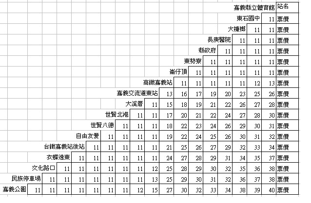 嘉义县立体育馆─高铁嘉义站─台铁嘉义站─嘉义公园 |