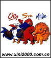 2000年雪梨奥运会的吉祥物,以澳大利亚特有的 3 种动物来做代表,分别是几乎纯种的鸭嘴兽(Syd)、澳大利亚特有种大型鸟类笑翠鸟 ( Olly ),以及也是澳大利亚特有动物频临绝种的针鼹 (Millie),英文名称分别取名于雪梨、奥林匹克及千禧年的字头,来当吉祥物的名字。 |
