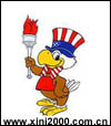 1984年洛杉矶奥运会的吉祥物是狄斯尼卡通的代表作,名为 Sam的老鹰以美国星条旗为背景,红白蓝颜色更是美国的代表色,以卡通造形的鹰穿著代表美国传奇人物「山姆大叔」的服装,由狄斯尼所设计的吉祥物,十足的美国风味。而吉祥物被商业化利用也从此次开始。 |
