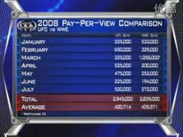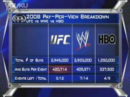 2008年1-7月UFC,WWE和HBO的PPV收入对比(摘自综合搏击统计)