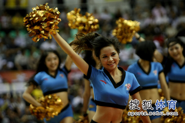 北京时间11月20日晚,2011-12新赛季CBA首轮继续进行。在东莞体育馆进行的较量中,主场作战的卫冕冠军广东东莞银行男篮经过四节争 夺以111-78战胜浙江稠州银行,喜获新赛季开门红。图为篮球宝贝热舞。