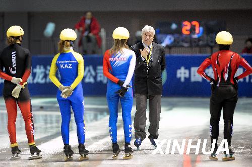 2月22日,短道速滑当值主裁判雅努斯(右二)警告选手不要消极比赛。当日,在第24届世界大学生冬季运动会短道速滑女子3000米半决赛中,周洋所在的第一组因选手比赛速度过慢而两次被判“消极比赛”,最终全组被取消比赛资格,最有希望夺金的周洋因此失去了再夺一枚金牌的机会。