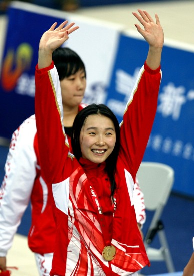 10月20日,浙江选手杨雨颁奖仪式后向观众致意。当日,在第十一届全运会游泳比赛女子200米自由泳决赛中,浙江选手杨雨以1分56秒74的成绩获得冠军。