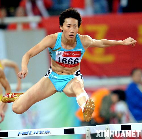 10月25日,山东队选手黄潇潇在比赛中。当日,在第十一届全运会田径女子400米栏决赛中,黄潇潇以55秒49的成绩夺得冠军。新华社记者李尕摄