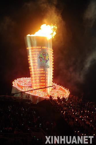 10月16日晚,第十一届全国运动会开幕式在济南举行。这是在开幕式上被点燃的主火炬。新华社记者李尕摄