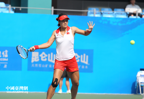 台湾网坛“一姐”詹咏然在比赛中。(中国台湾网 钟宝华 摄)