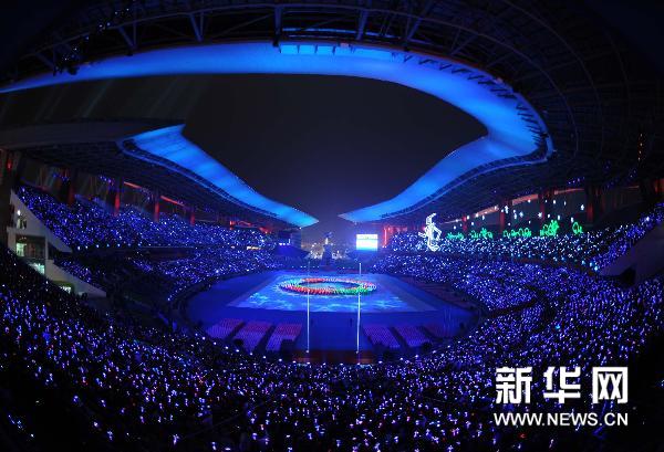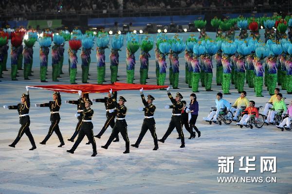 12月12日,2010年亚残运会开幕式在广州举行。这是开幕式前的倒计时表演《奔跑》。 新华社记者韩传号摄