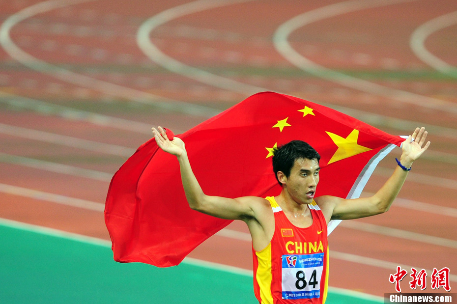 12月15日,中国选手祁顺在广州举行的2010亚残运会田径男子5000米T12级决赛中,以15分54秒01的成绩夺得金牌。中新社记者 陈文 摄