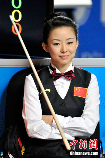 11月19日下午,广州亚运会女子美式9球单打决赛在亚运城体育馆上演,经过2个多小时的激烈角逐,中国选手潘晓婷以7:5力克中华台北选手周婕妤,最终夺冠。中新网记者 金硕 摄