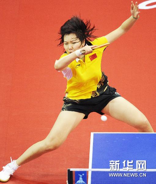 11月20日,中国选手李晓霞在比赛中。当日,在第16届亚运会乒乓球女子单打半决赛中,李晓霞以4比0战胜韩国选手金暻娥,晋级决赛。新华社记者徐家军摄