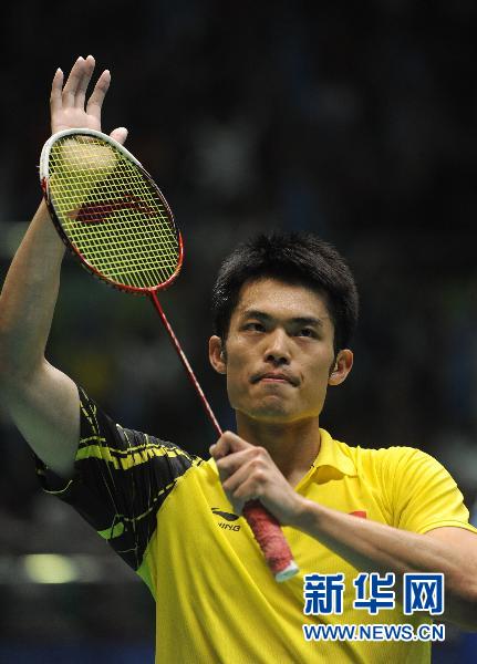 11月20日,中国队球员林丹庆祝获胜。当日,在第16届亚运会羽毛球男子单打半决赛中,林丹以2比0战胜韩国选手朴成奂,晋级决赛。新华社记者卢汉欣摄