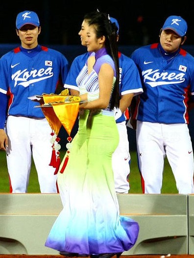 广州亚运会棒球项目的比赛结束了全部争夺,最终韩国队以9:3战胜中华台北队,摘得金牌。在颁奖仪式中,韩国棒球队全体队员注视着颁奖小姐,以至于集体看呆。