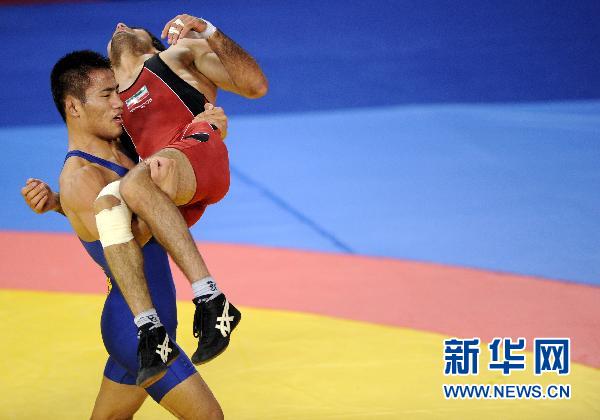 摔跤赛场温情一幕:中国选手高峰抱受伤对手下场