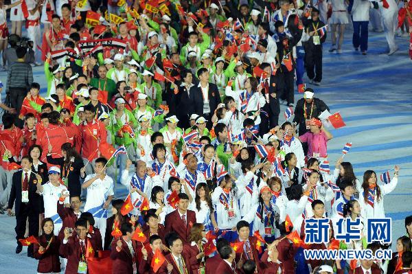 11月27日,代表团在闭幕式上入场。当日,第16届亚运会闭幕式在广州市海心沙岛举行。 新华社记者李勇摄