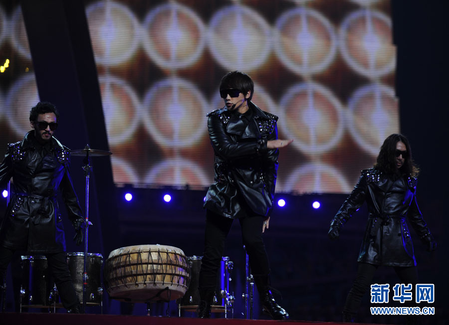 11月27日,韩国歌手郑智薰(Rain )在文艺表演中演唱。当日,第16届亚运会在广州市海心沙岛举行闭幕式。 新华社记者公磊摄