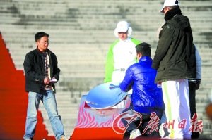 火炬手正在排练采火。 邵权达摄