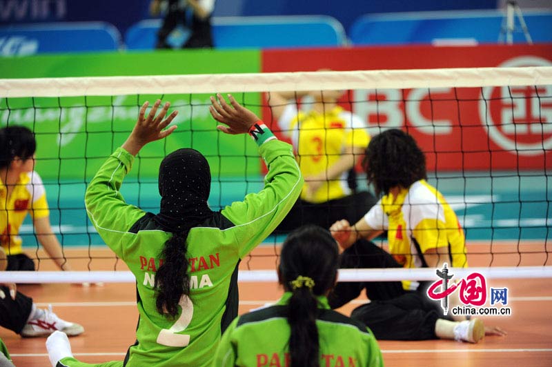 女子坐式排球预赛中国3比0胜巴基斯坦[组图]