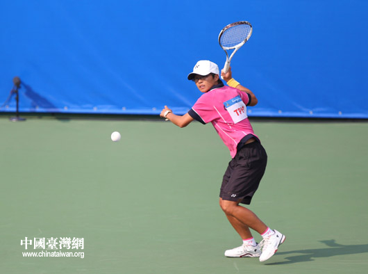中华台北队女子软式网球选手江婉绮在比赛中。(中国台湾网 钟宝华 摄)