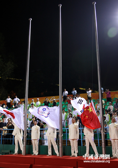 中华台北队软式网球男团夺金,现场升起中华台北奥委会会旗。(中国台湾网 钟宝华 摄)