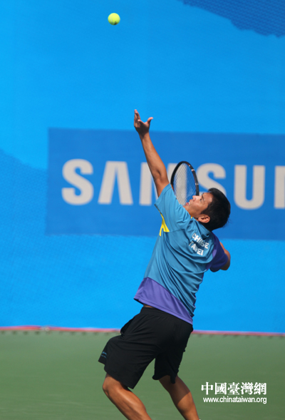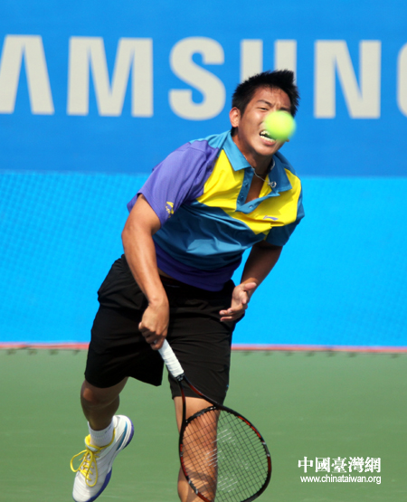 杨宗桦奋力发球。(中国台湾网 钟宝华 摄)