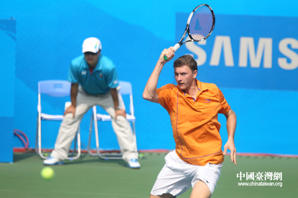 乌兹别克斯坦选手阵丹尼斯·伊斯托明回球。(中国台湾网 钟宝华 摄)
