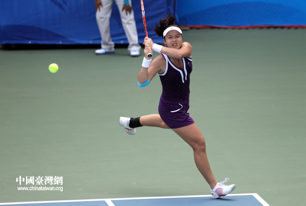 台湾网坛“一姐”詹咏然在比赛中。(中国台湾网 钟宝华 摄)