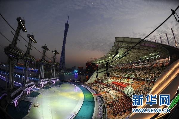 11月12日,第16届亚洲运动会开幕式即将在广州海心沙岛举行。这是开幕式前的海心沙岛会场。 新华社记者李钢摄
