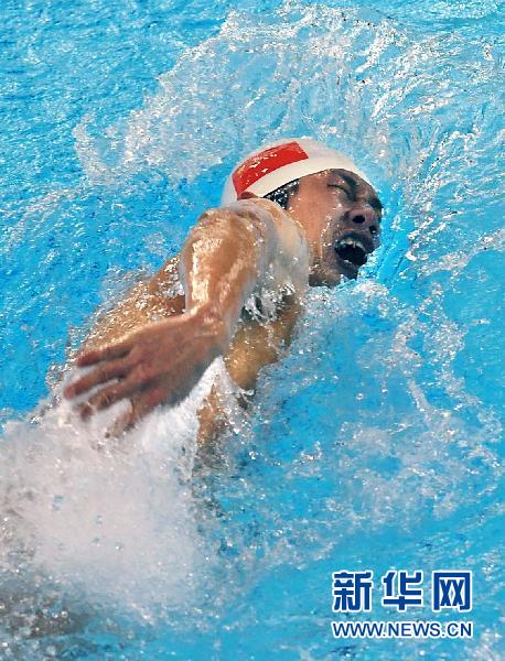 12月13日,中国选手魏燕鹏在比赛中。当日上午,在广州2010亚残运会游泳比赛男子S8级100米蝶泳决赛中,中国选手魏燕鹏以1分01秒96的成绩夺得金牌。新华社记者王颂摄