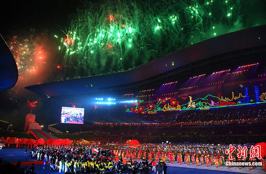 12月19日,随着绚烂的焰火燃放,广州2010年亚残运会正式闭幕。中新社发 程景伟 摄