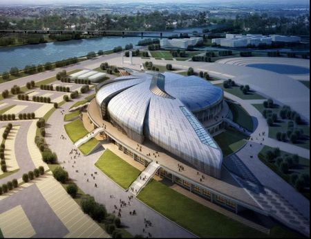 南沙体育馆是亚运会武术比赛场馆,因此在设计上场馆也体现了中国武术的意境。南沙体育馆的外壳分九个曲面单元,单元间片片层叠,并分为南北两组以比赛大厅圆心为中心呈螺旋放射状展开。这种富有动感的设计隐喻了中国武术的最高境界——“阴阳俱合,天人合一”。同时结合广东海洋文化的特征,借鉴了富有肌理变化的“海螺”外壳作为造型设计的意向。南沙体育馆主体钢结构部分采用了双层环形张弦穹顶结构,主跨度达到了98米。