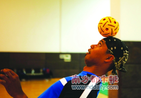 今年29岁的国家队运动员AZM AN教我怎么玩藤球,5个基本动作中我根本无法学会的是“KEPALA”,也就是用头部不断往上顶藤球,犹如海豚戏球般,圆圆的藤球可以在头部自如地左右轻微转动或上下弹动。