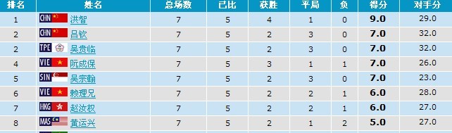 第五轮比赛,第一台洪智后手和中华台北老棋王吴贵临,第二台吕钦后手和越南劲敌阮成保。其他比赛如下:
