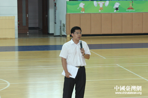 东莞市体育局副局长詹志雄为媒体介绍亚运会筹备情况(中国台湾网 赵辉 摄)