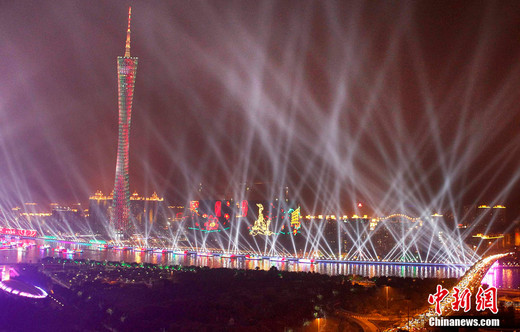 11月10日晚,广州亚运会开幕式举行最后一次彩排,珠江两岸流光溢彩。