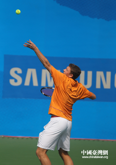 乌兹别克斯坦选手阵丹尼斯·伊斯托明发球。(中国台湾网 钟宝华 摄)