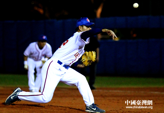 广州亚运棒球决赛今晚进行,中华台北队与韩国队争夺金牌。图为中华台北队投球。(中国台湾网 沈鹏 摄)