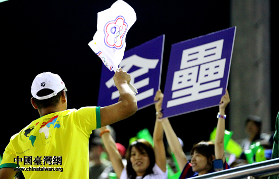 广州亚运棒球决赛今晚进行,中华台北队与韩国队争夺金牌。图为啦啦队为中华台北队加油呐喊。(中国台湾网 沈鹏 摄)