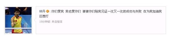 林丹大满贯后仍不满足 微博直言:我还想打!