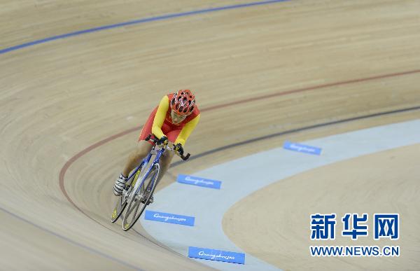 12月13日,中国选手周菊芳在比赛中。当日,在广州2010年亚洲残疾人运动会场地自行车混合计时赛中,周菊芳以1分08秒348的成绩夺得金牌。新华社记者卢汉欣摄