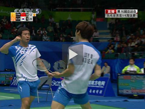 羽毛球男双淘汰赛:蔡赟傅海峰vs郑在成李龙大