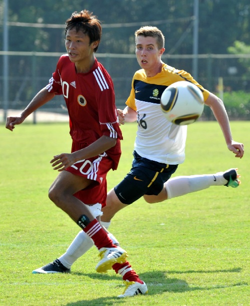 香港,2010年9月28日 (亚运会)(4)足球——中国香港足球队备战广州亚运会 9月28日,香港队球员杨赐麟(左)防守澳洲U19青年队球员的进攻。当日,为备战11月在广州举行的第16届亚洲运动会,中国香港足球队在香港晒草湾球场与澳洲U19青年队进行一场友谊赛,最终中国香港队以2比2战平澳洲U19青年队。 新华社记者卢炳辉摄