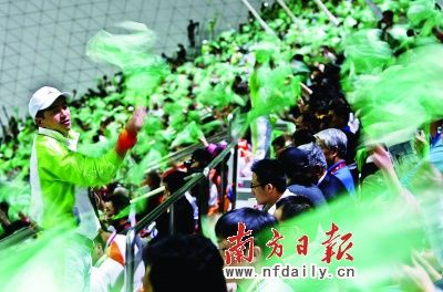 每逢颁奖仪式,天河体育场器材组的“红地毯派”志愿者,就要“倾巢而动”,争分夺秒地铺红地毯。