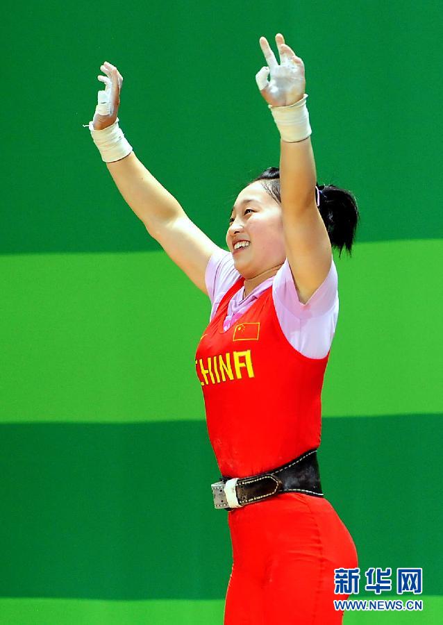 8月13日,肖鸿宇在比赛中。当日,在深圳市体育运动学校综合训练馆举行的第26届世界大学生夏季运动会女子48公斤级举重比赛中,中国选手肖鸿宇以总成绩188公斤获得冠军。新华社记者王颂摄