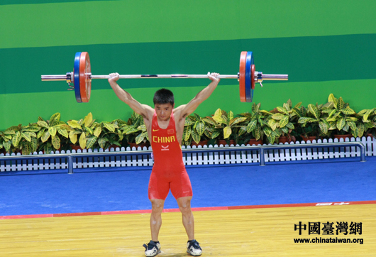 中国队选手黎立志以总成绩273公斤获得男子56公斤级的举重冠军。(中国台湾网 于斯文 摄)