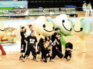 UU是万能的,它是欢笑的笑脸,也是搞怪的吉祥物,它更是点燃全场数万名观众激情的神奇DJ。在龙岗体育中心篮球馆,每到比赛中场休息时,UU就会化身DJ,一边搓碟、一边舞动,在它身边还有一个能说会道的说唱歌手,九个活力无限的街舞高手,他们组成了大运嘻哈团。如果整个场馆是激情四射的火药库,那么嘻哈团就是那根点燃观众激情的导火索。